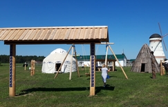 В казахском ауле воссозданы неотъемлемые атрибуты степной жизни — коновязи. В степи они служили символическими воротами: даже если рядом не видно людей и скота, одна лишь коновязь показывала, что земля обжита и принадлежит хозяину.